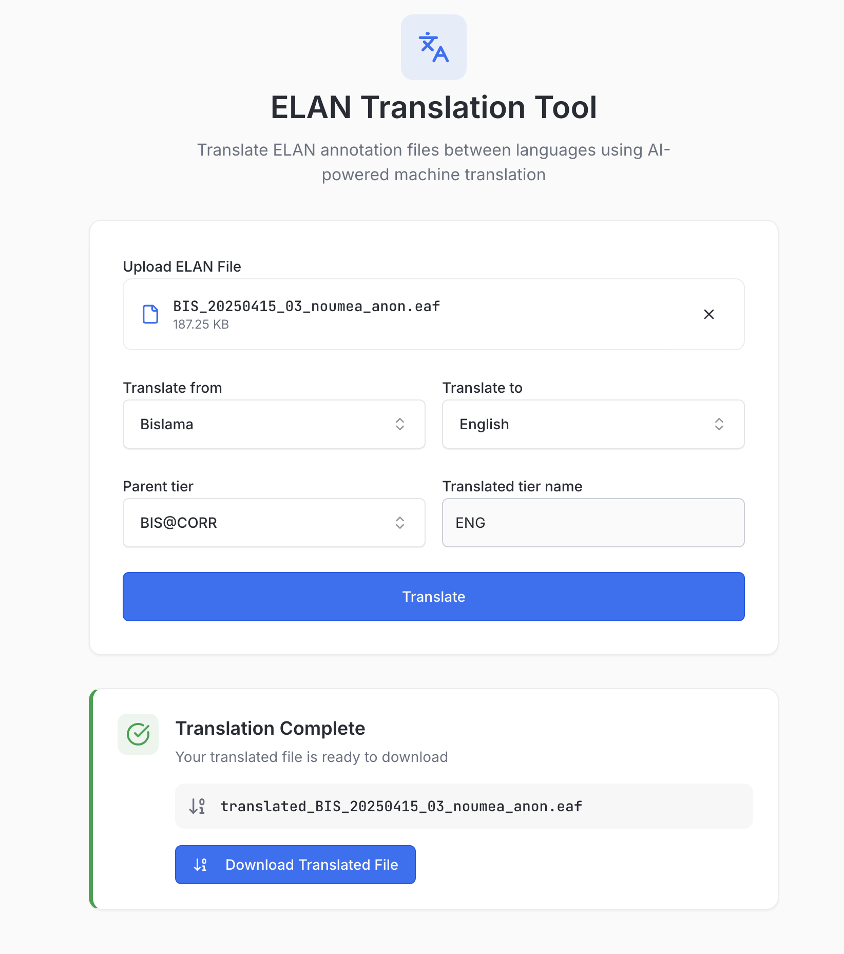 The primary developer of these applications is Dr Marco La Rosa. The ELAN translator is written by Raphaël Merx.